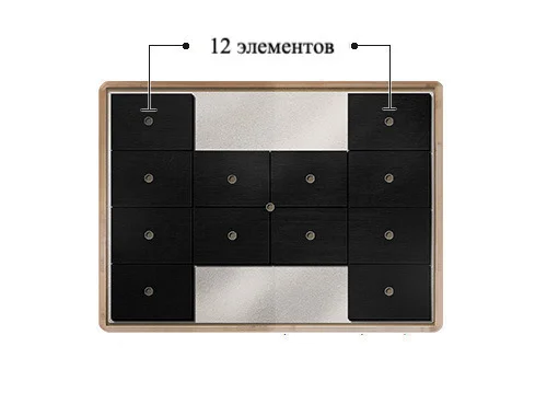 Внутри это выглядит вот так. Здесь 12 элементов, но 13 отверстий. Обратите внимание, КФС с 12 элементами мы сделали в неразборном корпусе, чтобы не было соблазна открыть, посмотреть, что внутри, уже много раз на этом обжигались. Решили в этот раз не обжигаться.